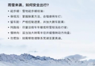 ??雪天出行 守護(hù)常伴蕪湖亞夏奧迪溫馨提示輕踩油門 增大車距緩慢轉(zhuǎn)彎 點(diǎn)踩剎車24h救援熱線:0553-2873118