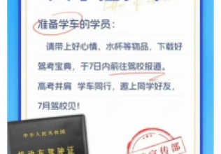 轉(zhuǎn)發(fā)此份通知書祝你被心儀學(xué)校錄取高考并肩,學(xué)車同行提升自己,助力未來邀上好友,7月相約駕校見暑期的意義不在于你休息了多久而在于你收獲了什么有的人宅家兩個(gè)月一事無成有的人學(xué)車考駕照未來可期所以報(bào)名學(xué)車就現(xiàn)在來亞夏駕校吧!歡迎大家前來試駕、咨詢、報(bào)名。報(bào)名熱線:0563-2062810