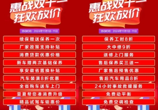 惠戰(zhàn)雙十一狂歡放價(jià)活動(dòng)期間購(gòu)車享補(bǔ)貼優(yōu)惠?保養(yǎng)套餐買三贈(zèng)一更劃算活動(dòng)火爆進(jìn)行 錯(cuò)過(guò)再等一年銷售熱線:0553-2875818售后熱線:0553-2873228